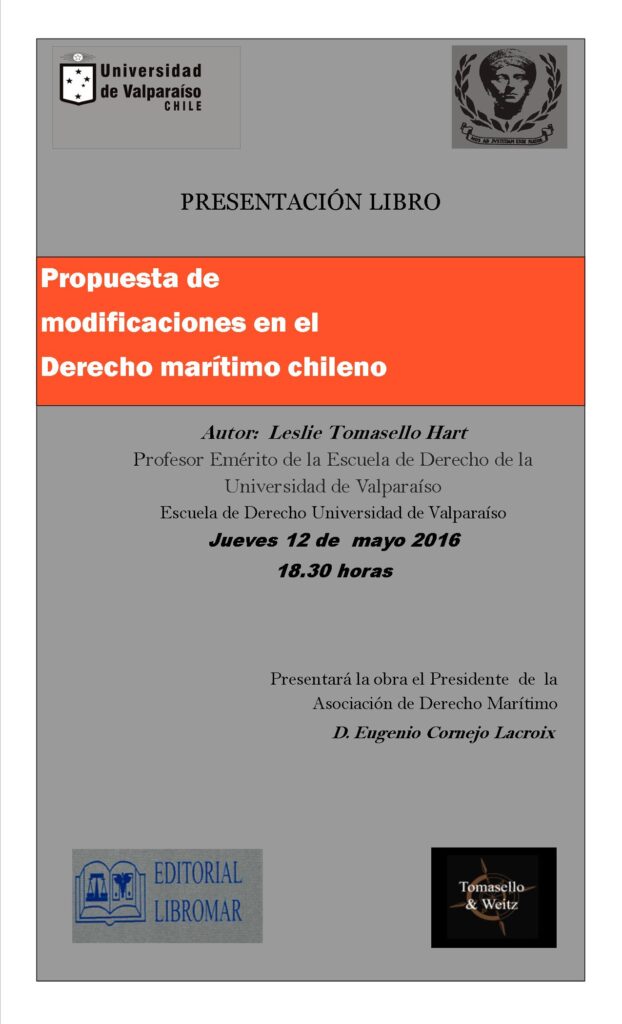 Presentación libro “Propuesta de Modificaciones en el Derecho Marítimo Chileno” del Profesor Leslie Tomasello H. Mayo 4, 2016