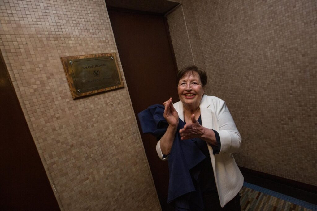 Finalizada la actividad, los asistentes se dirigieron a la Sala de Litigación -ubicada en el primer piso de la Escuela- para descubrir la placa que la denomina con el nombre de “Susana Bontá Medina”, en una emotiva instancia donde participaron las autoridades de la Facultad de Derecho, integrantes del cuerpo académico de Derecho UV e invitados especiales.