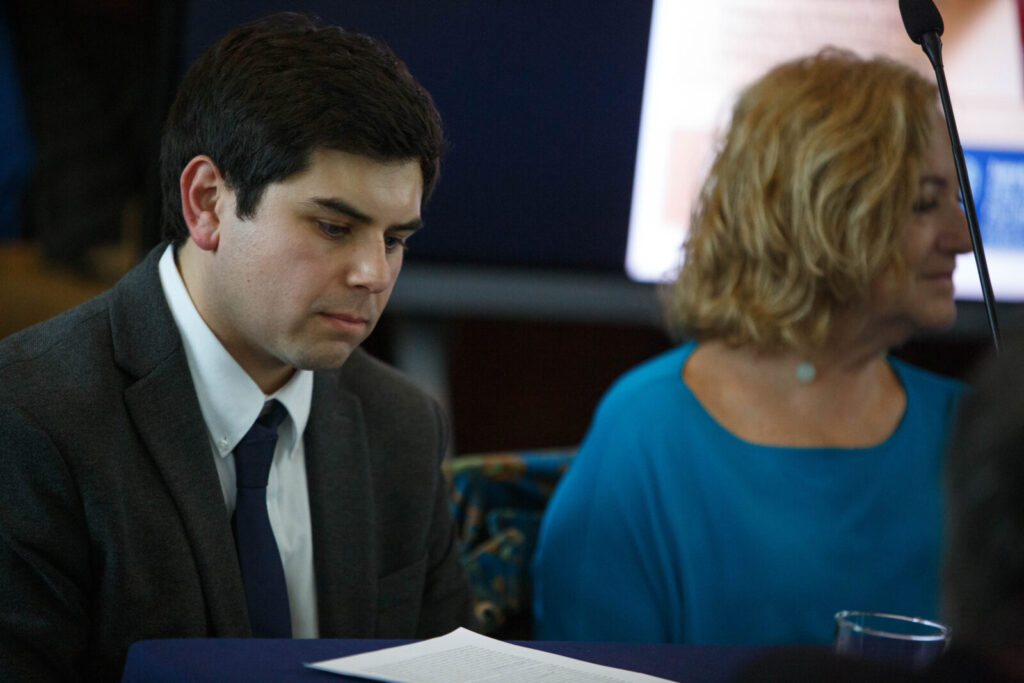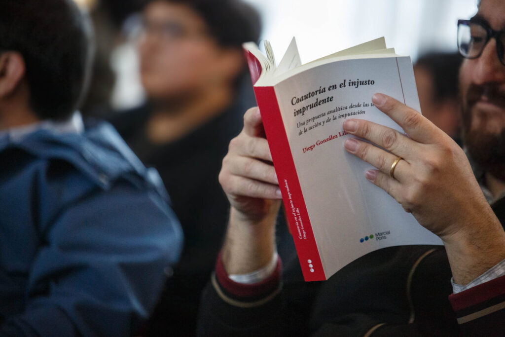 Por otro lado, intervino Diego González, profesor y autor de la obra, quien primeramente agradeció la asistencia de autoridades, profesoras y profesores, y la amplia convocatoria de estudiantes presentes en la actividad. Tras ello, explicó las razones que lo llevaron a desarrollar de manera monográfica el problema de la coautoría por imprudencia y los desafíos teóricos y prácticos que ello supuso, para finalizar agradeciendo a las personas e instituciones que contribuyeron al desarrollo de su tesis doctoral.