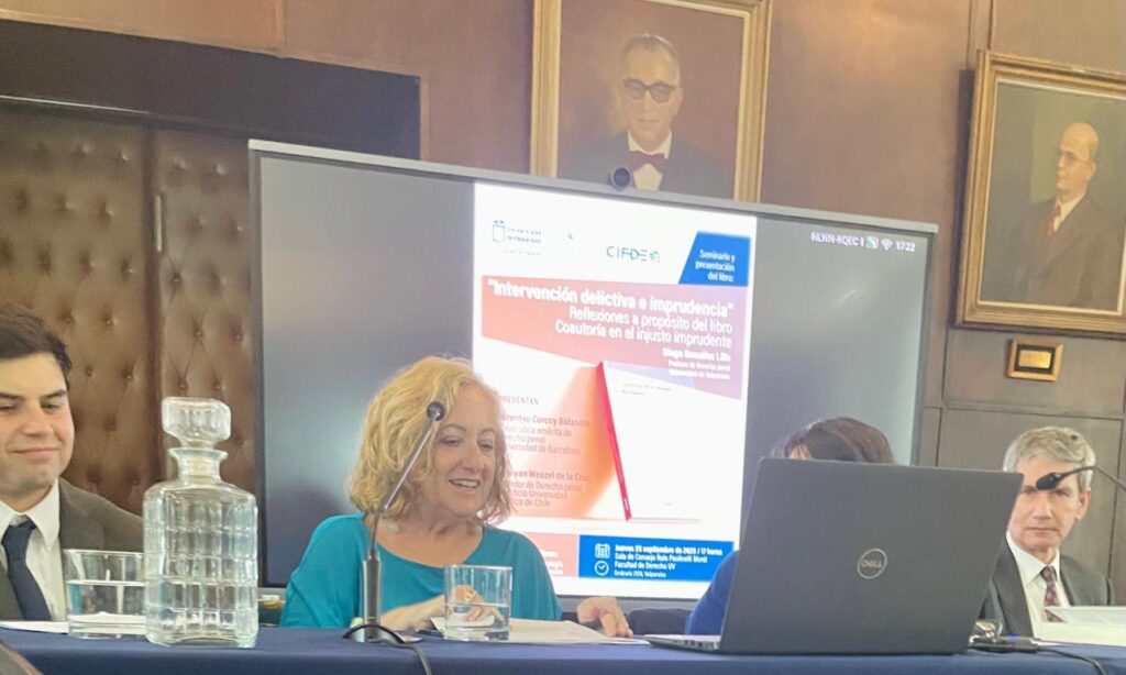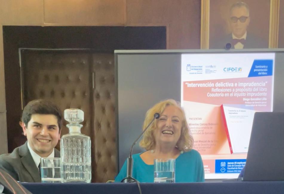 El libro fue presentado por Mirentxu Corcoy Bidasolo, catedrática emérita de Derecho Penal de la Universidad de Barcelona (España); y Alex van Weezel, profesor de Derecho Penal de la UC, en una jornada moderada por Marcela Aedo, académica de la Universidad de Valparaíso y organizada por la Escuela de Derecho y el Centro de Investigaciones de Filosofía del Derecho y Derecho Penal (CIFDE) de la UV.