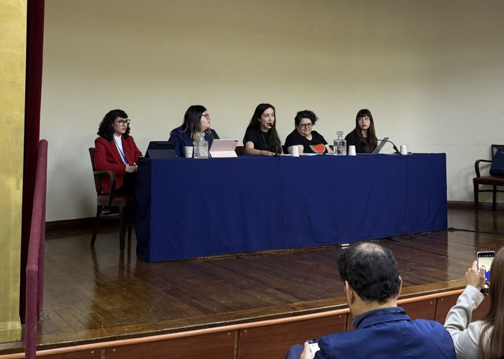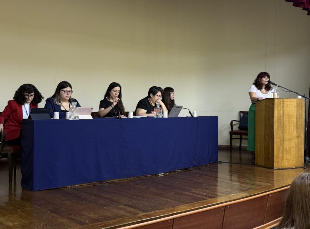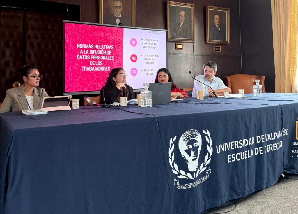Luego, en el panel “Libertad sindical y derecho a huelga”, participaron la profesora Pamela Martínez (Universidad de Chile) y las estudiantes Tamara Morales (UV), Loreto Miranda y Martina Allende (UV), en una mesa moderada por la académica Lucía Planet (Universidad de Chile).