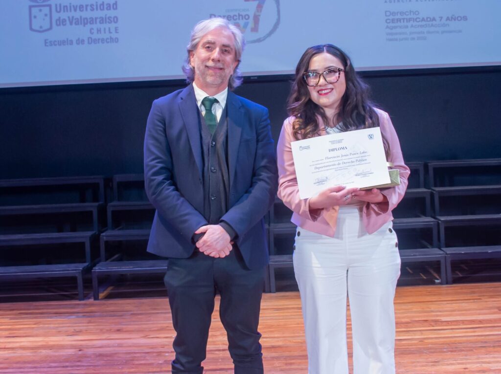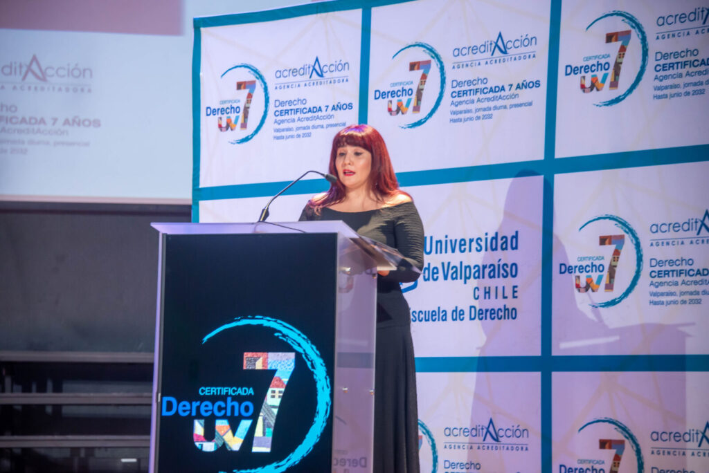 La solemne ceremonia se llevó a cabo en el Aula Magna Victorio Pescio de la Facultad de Derecho de la Universidad de Valparaíso, en un acto encabezado por la directora de la Escuela de Derecho de la UV, Inés Robles, quien estuvo acompañada en la testera por el decano de la Facultad de Derecho, Ricardo Saavedra, y el presidente del Colegio de Abogados de Valparaíso, Enrique Gaete.