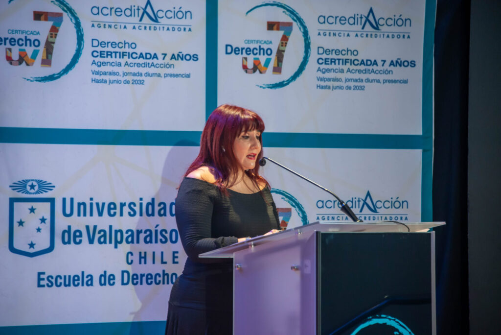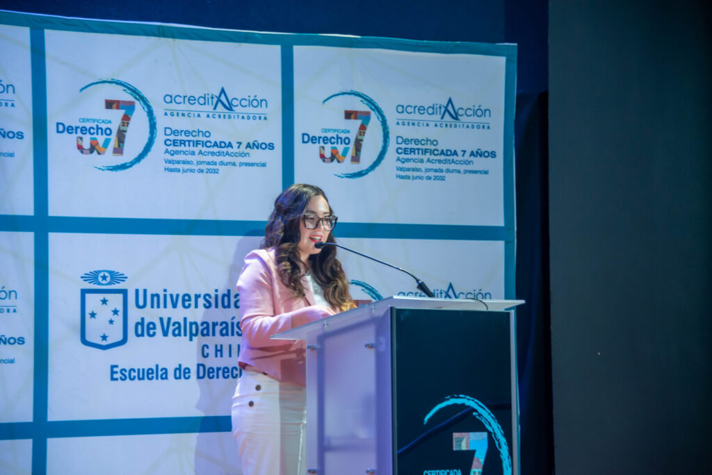 Continuó detallando que “hoy nos llena de orgullo recordar que nuestra carrera fue certificada por 7 años, un testimonio del esfuerzo y dedicación de todos los que formamos parte de este proceso. Esta certificación no es solo un sello de calidad, sino la base sólida sobre la que nos apoyamos para enfrentar los desafíos de hoy y los que están por venir. También, expresamos nuestro agradecimiento a la Universidad de Valparaíso, nuestra querida Facultad de Derechoy a toda la comunidad universitaria. Su entrega académica y humana marcó nuestra formación y quedará como parte esencial de este logro”, añadió.