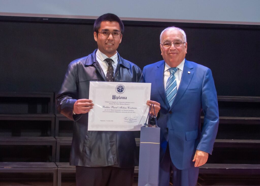 En tanto, el premio al Mejor Egresado de la Promoción 2024 recayó en Diego López, quien alcanzó la nota 6,01 como promedio de las 61 asignaturas de pregrado cursadas, sin haber reprobado ninguna de ellas.