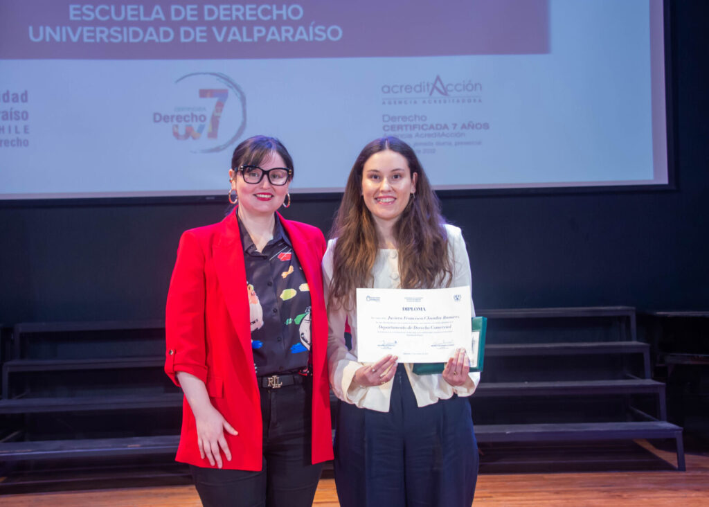 La egresada Javiera Chandía recibió el premio de los departamentos de Derecho Comercial, Derecho del Trabajo y Seguridad Social, y Derecho Procesal.