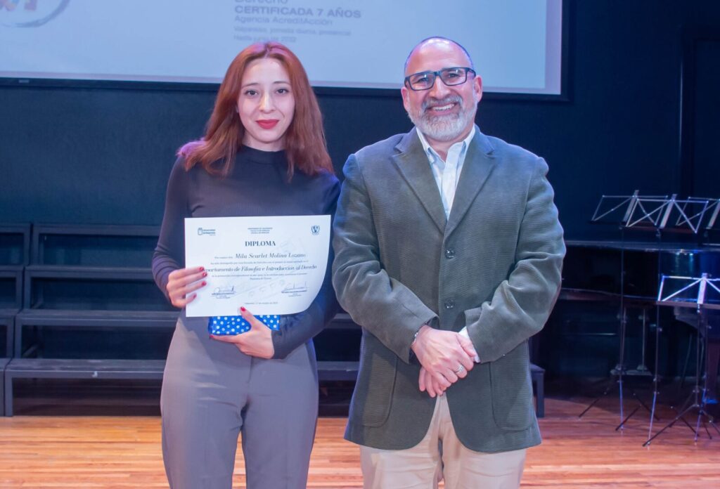 La egresada Mila Molina recibió el premio del departamento de Filosofía e Introducción al Derecho.