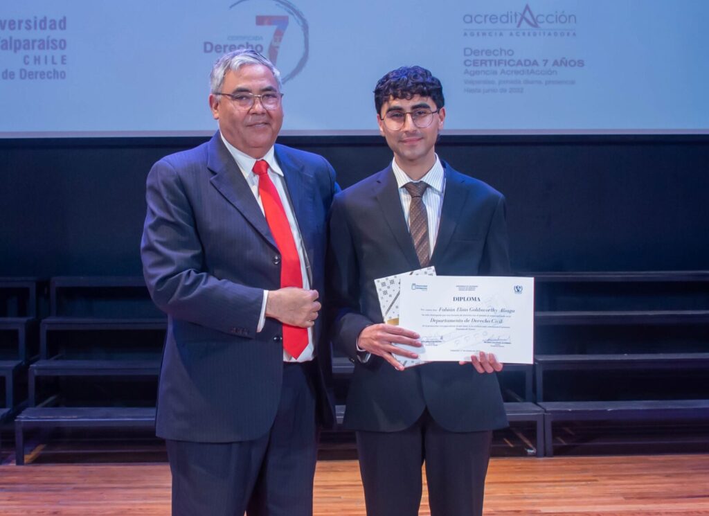 El egresado Fabián Goldsworthy recibió el premio del departamento de Derecho Civil.