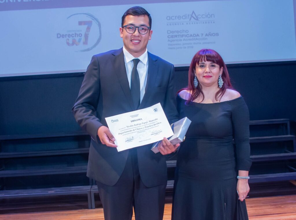 El egresado Nicolás Espejo recibió el premio del departamento de Clínica y Práctica Jurídica.