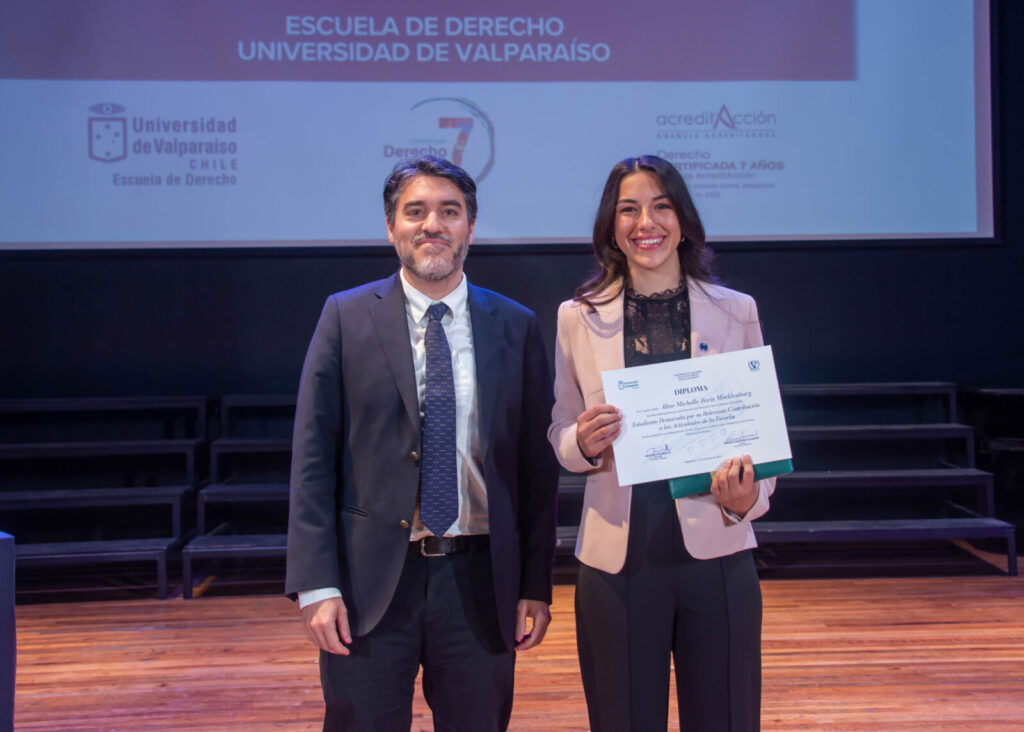 Como es tradición durante la ceremonia de egreso, el Colegio de Abogados de Valparaíso entregó el premio al Mejor Licenciado 2024, distinción que lleva por nombre “Premio René Moreno Monroy”. El reconocimiento recayó en Roldán Molina, quien se destacó por su óptimo rendimiento académico durante los años de estudios de pregrado, en su examen de licenciatura y en su tesina o memoria de grado.