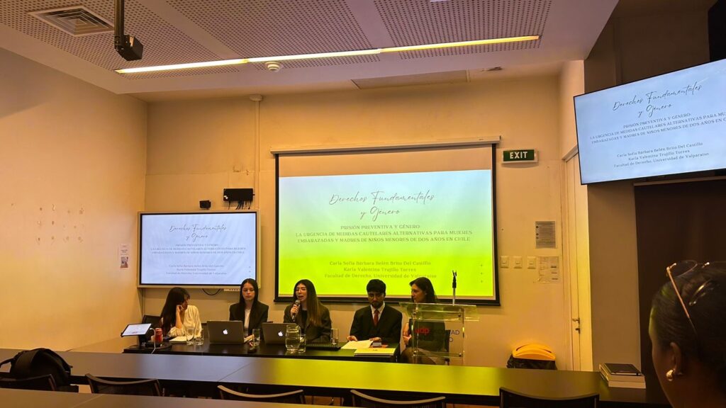Según explicaron las alumnas, “el análisis evidenció que el sistema penitenciario chileno mantiene una estructura androcéntrica que invisibiliza las necesidades específicas de estas mujeres, quienes muchas veces enfrentan condiciones carcelarias críticas, con hacinamiento, insalubridad y escaso acceso a programas de apoyo. A ello se suma que un porcentaje significativo de la población penal femenina en prisión preventiva está imputada por delitos no violentos, principalmente vinculados a la Ley de drogas, generando un impacto desproporcionado tanto en ellas como en sus hijos, cuyo interés superior se ve gravemente vulnerado por el encierro materno”.