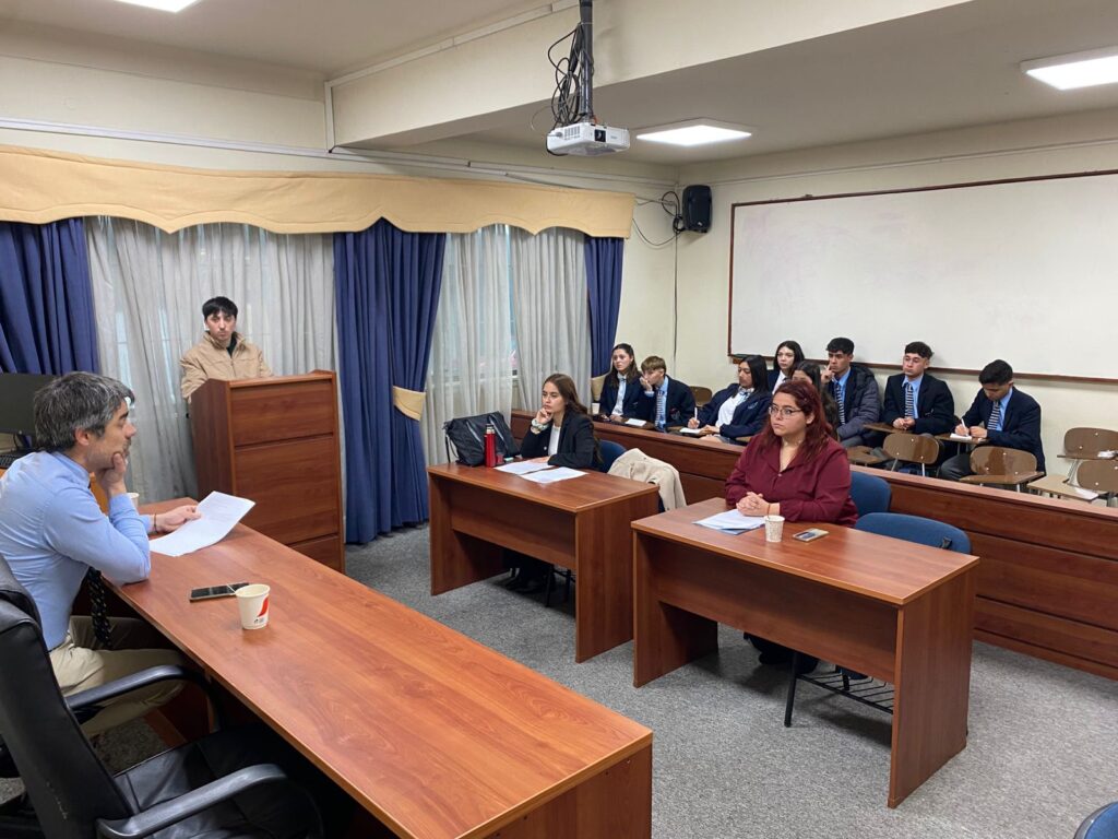 Asimismo, se refirió a los avances tecnológicos actuales y a la internacionalización, ámbitos en los cuales la unidad académica ha dado importantes pasos en pos de alinear sus acciones con las nuevas tendencias y temáticas relativas a la enseñanza jurídica. Finalmente, abrió un espacio de diálogo con los estudiantes y el profesor del colegio visitante.