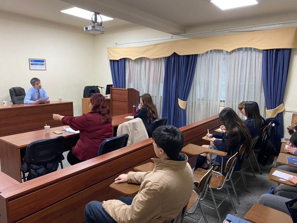Posterior a las charlas, el grupo de escolares participó de un juicio simulado en vivo sobre un caso del área del Derecho del Trabajo, donde se expuso la relación somera de la demanda y contestación y llamado a conciliación.