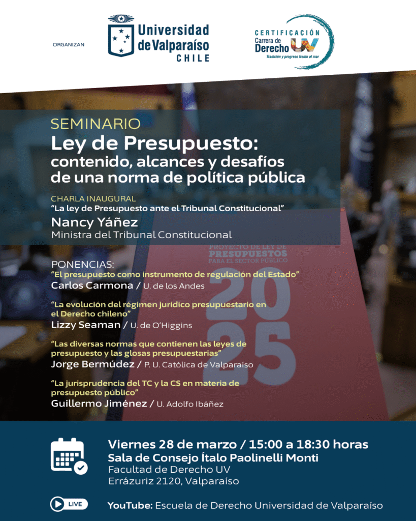 El departamento de Derecho Público de la Escuela de Derecho de la UV, invita a participar del seminario “Ley de Presupuesto: contenido, alcances y desafíos de una norma de política pública”